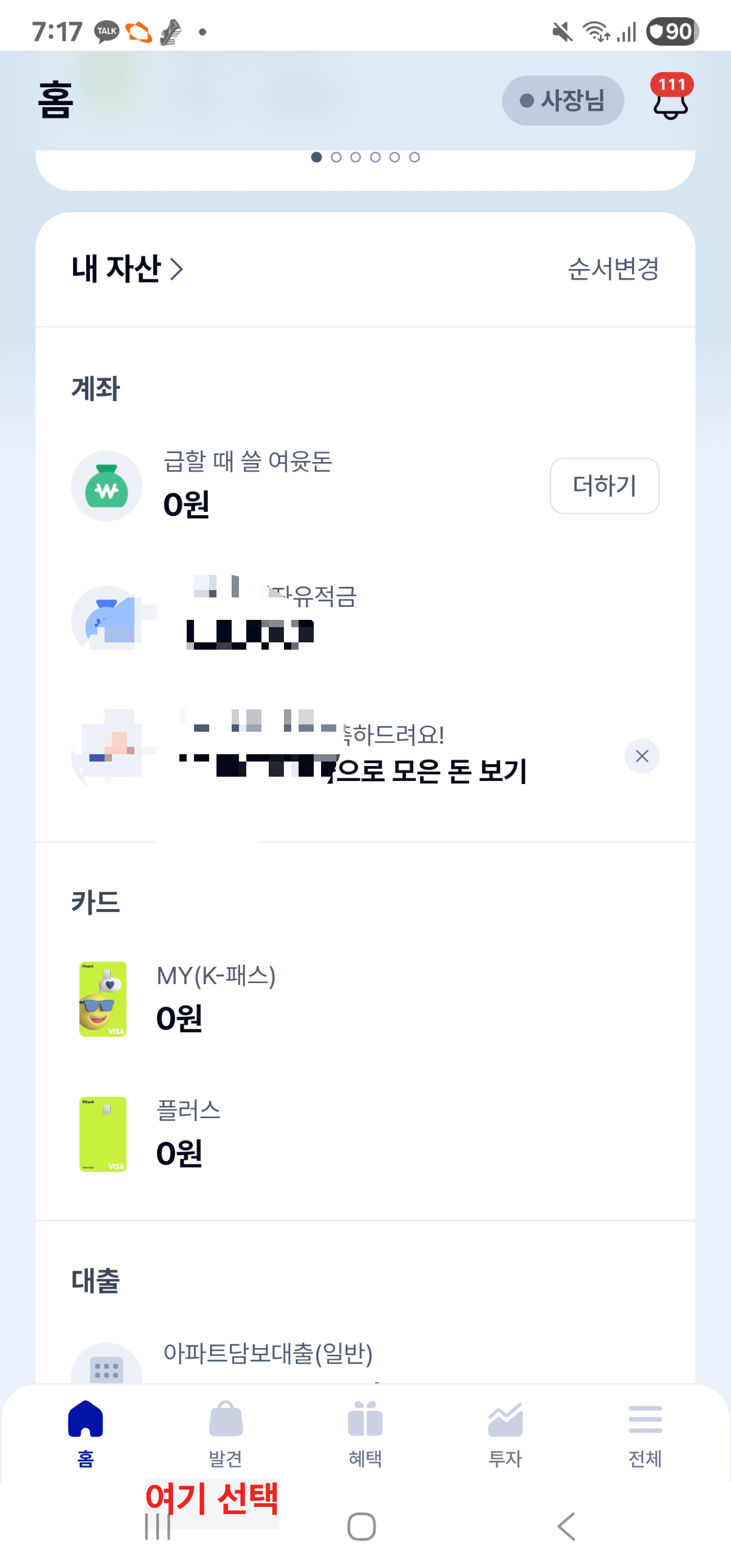 - 케이뱅크 앱 실행 → 메인 화면 하단에 "발견 탭" 선택